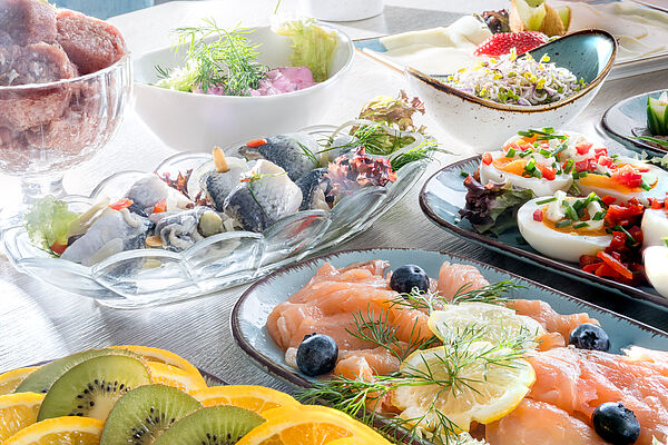 Außer-Haus-Gäste genießen unser reichhaltiges Frühstücksbüffet für € 23,00 pro Person.