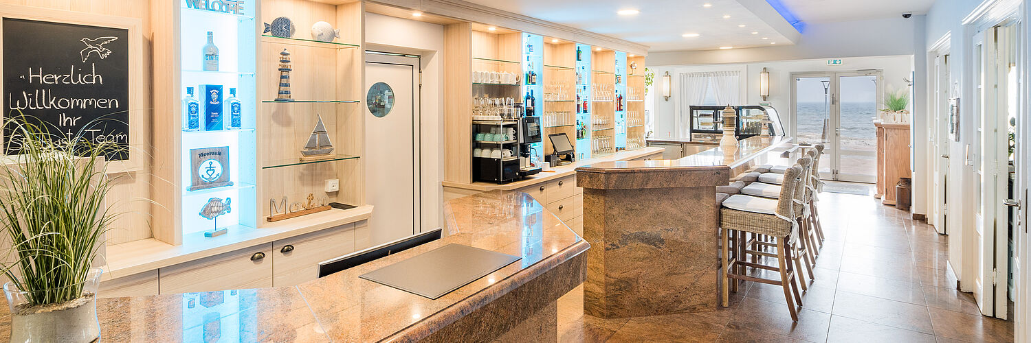 Glücklich ist, wer das Leben genießen kann. In unserem Hotel gibt es viele Plätze, an denen Ihnen das gelingen wird. Unsere Hotelterrasse, von der aus Sie morgens die Sonne aus dem Meer steigen sehen, ist einer davon. Der andere lockt vor allem am Abend die Gäste zu einem Aperol, einem kühlen Bier oder einem Glas Wein. Willkommen an unserer Bar!